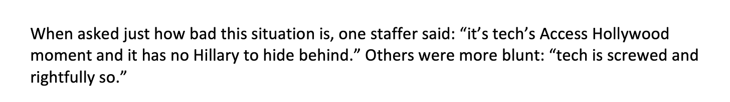 Szabo reports to Twitter that some Hill figures are characterizing the laptop story as “tech’s Access Hollywood moment”: