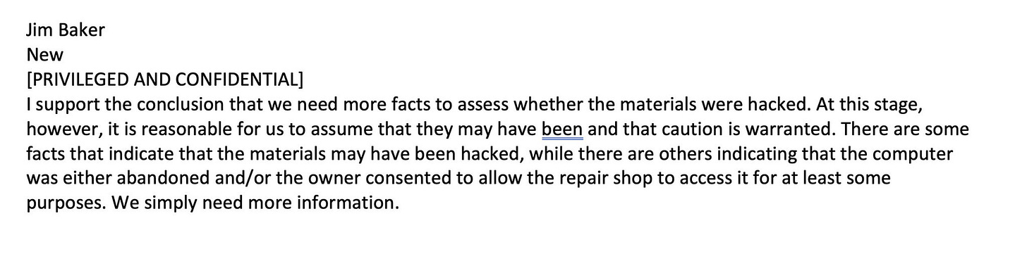 Although several sources recalled hearing about a “general” warning from federal law enforcement that summer about possible foreign hacks, there’s no evidence - that I've seen - of any government involvement in the laptop story. In fact, that might have been the problem... The decision was made at the highest levels of the company, but without the knowledge of CEO Jack Dorsey, with former head of legal, policy and trust Vijaya Gadde playing a key role.