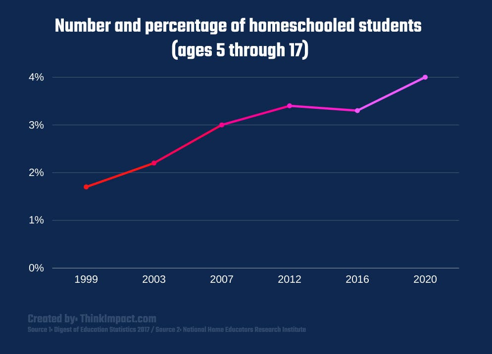 The Covid-19 Plandemic prompted many parents to start homeschooling—and this trend continued at high rates as the benefits became more evident. For example, from 2019 to the fall of 2020, the percentage of homeschooled students changed from 3.4% to 9%.